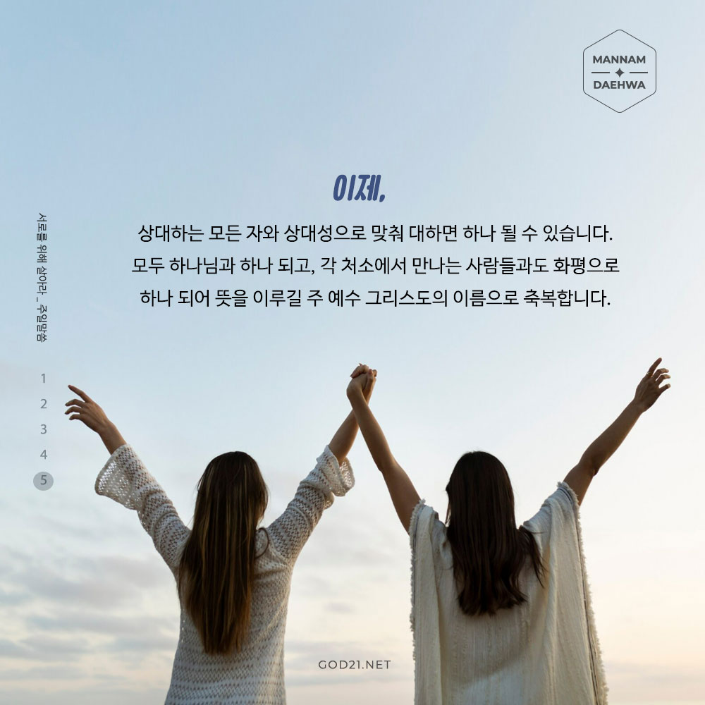 이제, 상대하는 모든 자와 상대성으로 맞춰 대하면 하나 될 수 있습니다.