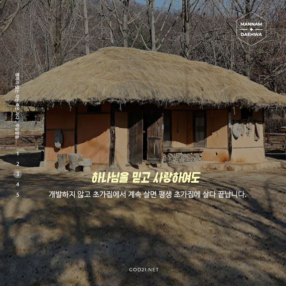 하나님을 믿고 사랑하여도 개발하지 않고 초가집에서 계속 살면 평생 초가집에 살다 끝납니다.