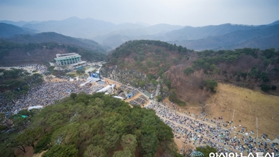 올해로 11주년, 월명동 자연 성전서 주일 연합예배와 대규모 종합예술제 열려선교회 측 “현재도 영 휴거는 진행 중…. 신앙공동체로서 역할 이어 나갈 것” ▲ 세계 78개국에서 모인 교인 5만여 명이 ...